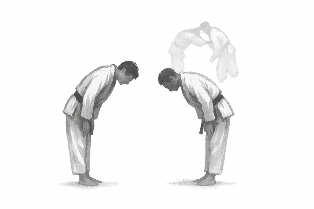 Rei (ukłon) przed i po wejściu na tatami oraz wobec partnera i trenera.